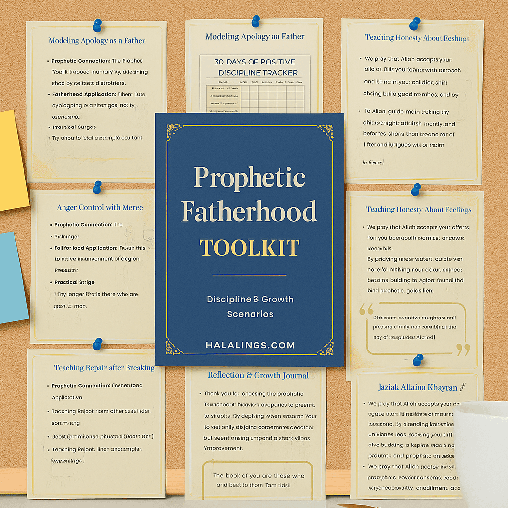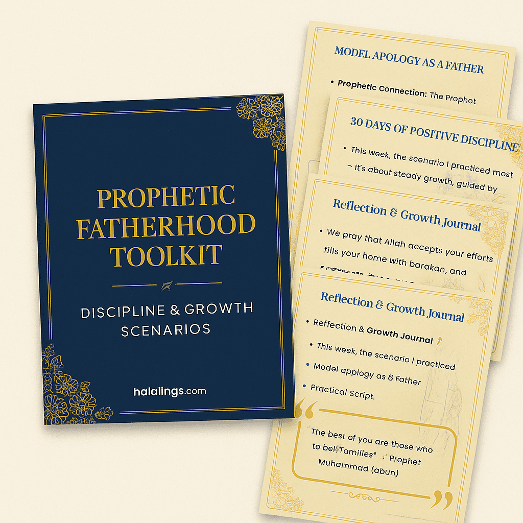Inspired by the teachings and parenting methods of Prophet Muhammad (pbuh), this pack offers realistic scenarios, gentle solutions, and journaling prompts to help Muslim fathers build respectful, responsible, and emotionally intelligent children.