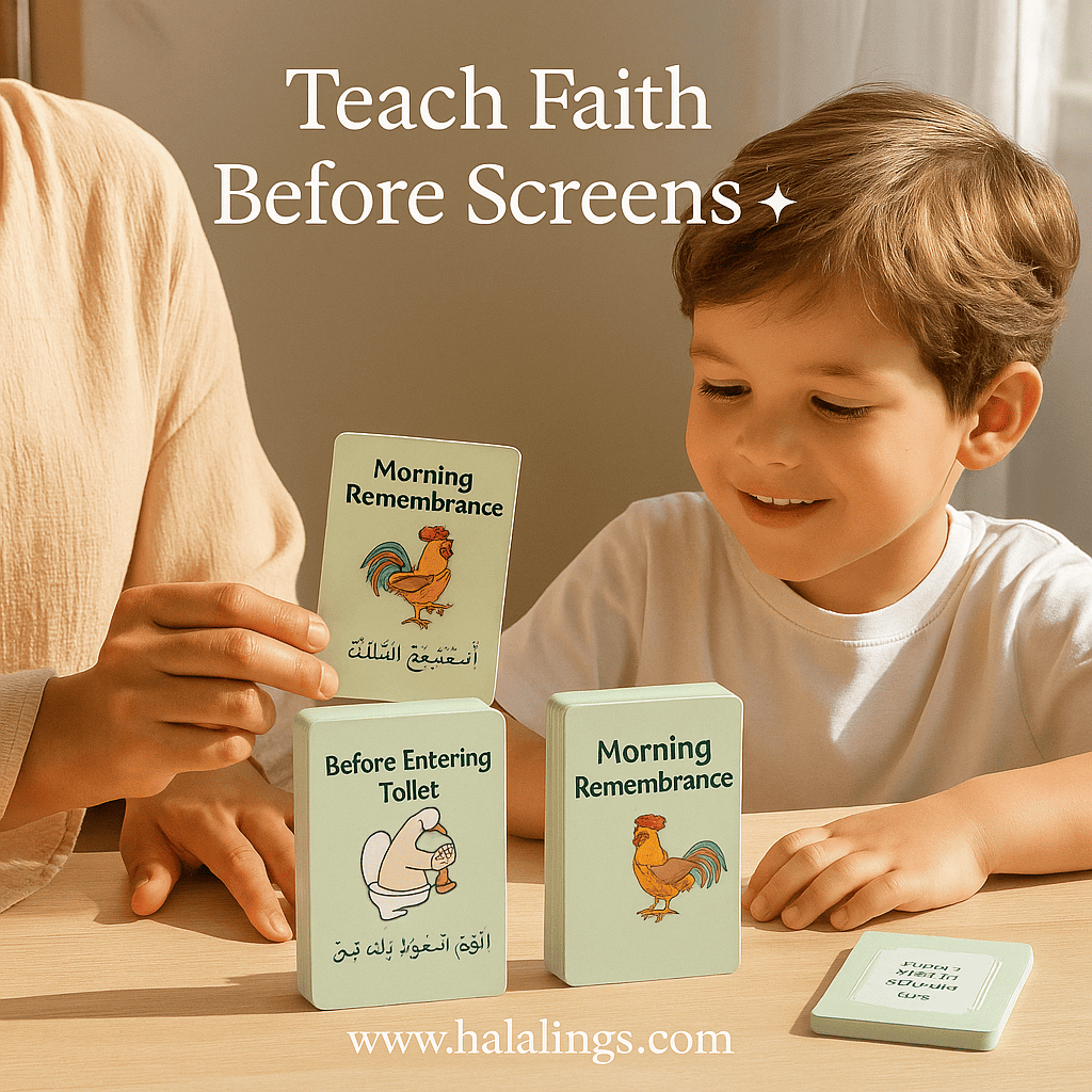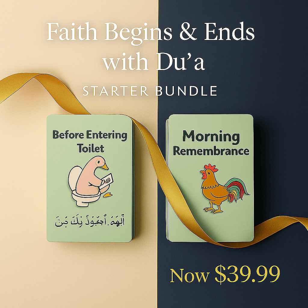 From the moment they open their eyes to the moment they sleep, each duʿa card plants gratitude, focus, and faith through color, rhythm, and repetition.