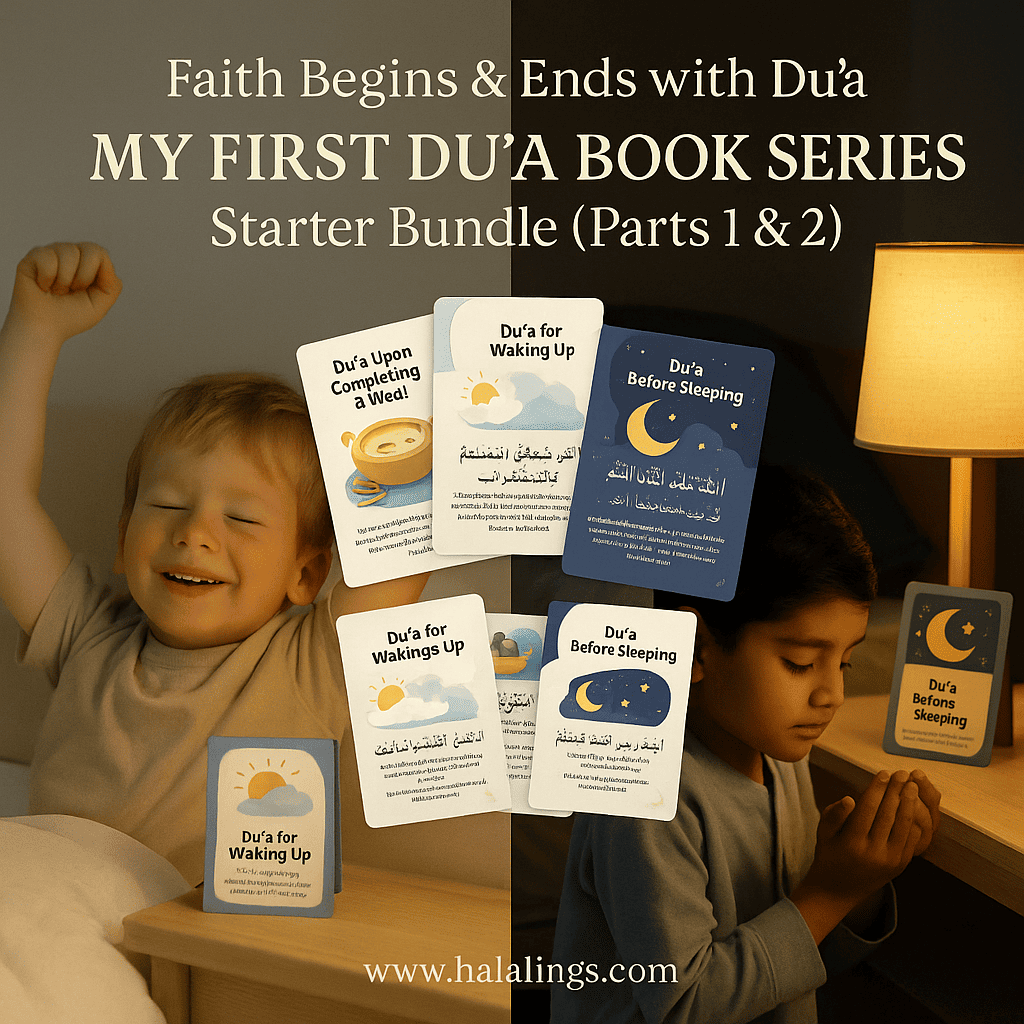 The My First Duʿa Book Series – Starter Bundle combines Part 1 (Daily Essentials) and Part 2 (Morning & Evening) — creating a full 24-hour spiritual cycle for young hearts.