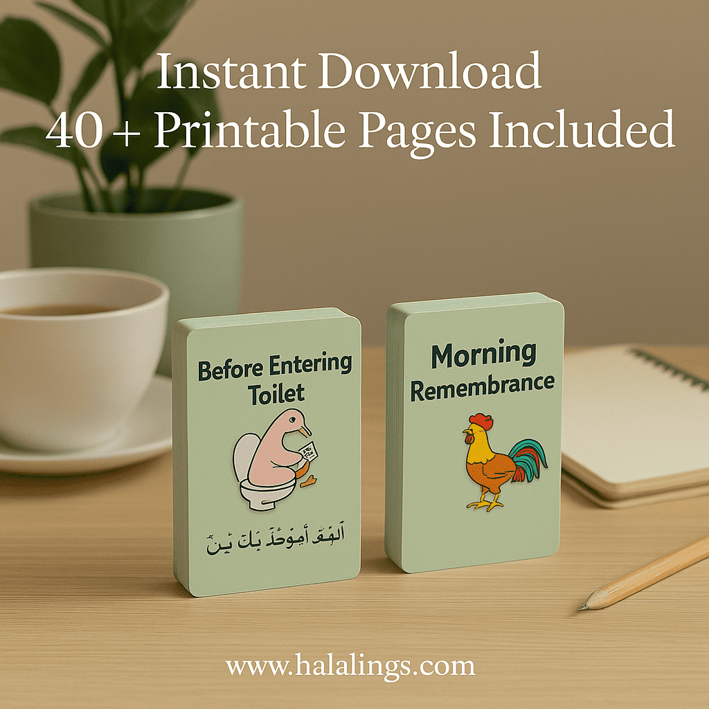 20 Illustrated Duʿa Cards (Arabic + Transliteration + Meaning)