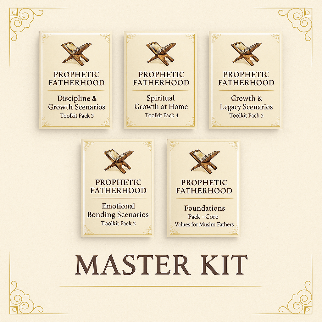 Each toolkit blends authentic Qur’an & Hadith guidance with practical reflection sheets and parenting scenarios — helping fathers connect faith with daily family life.